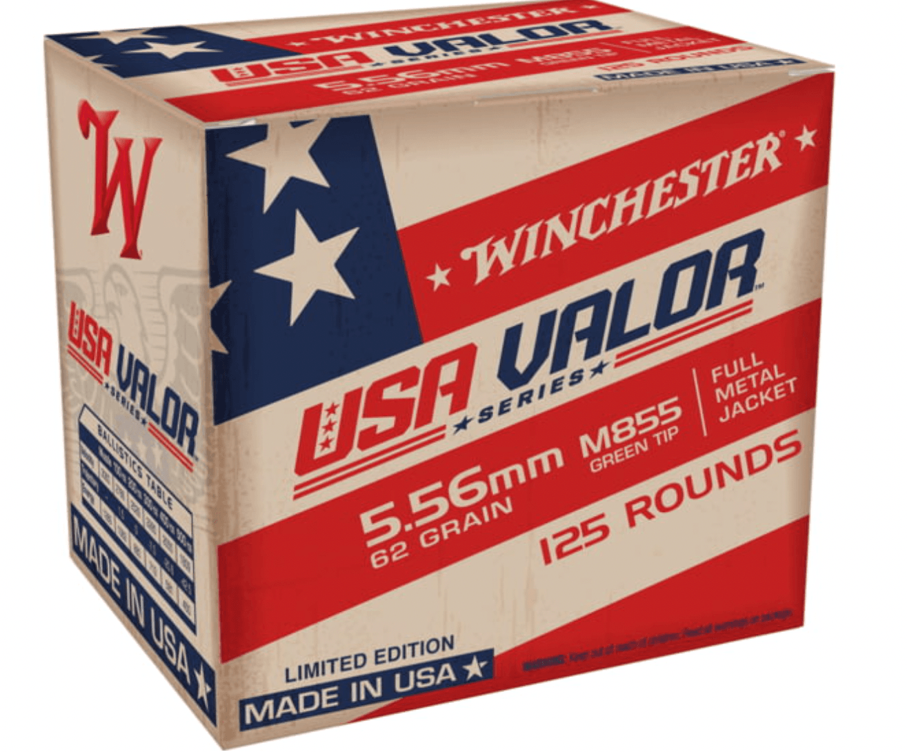 - Winchester USA Valor 5.56mm 62 Grain M855 Green Tip FMJ Centerfire Rifle Ammunition, Bulk Case Box of 500 rounds