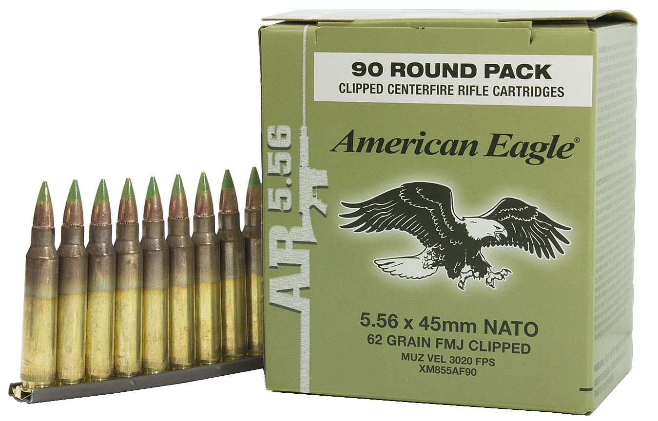 - Quantity: 90 rounds per box; 10 rounds per stripper clip