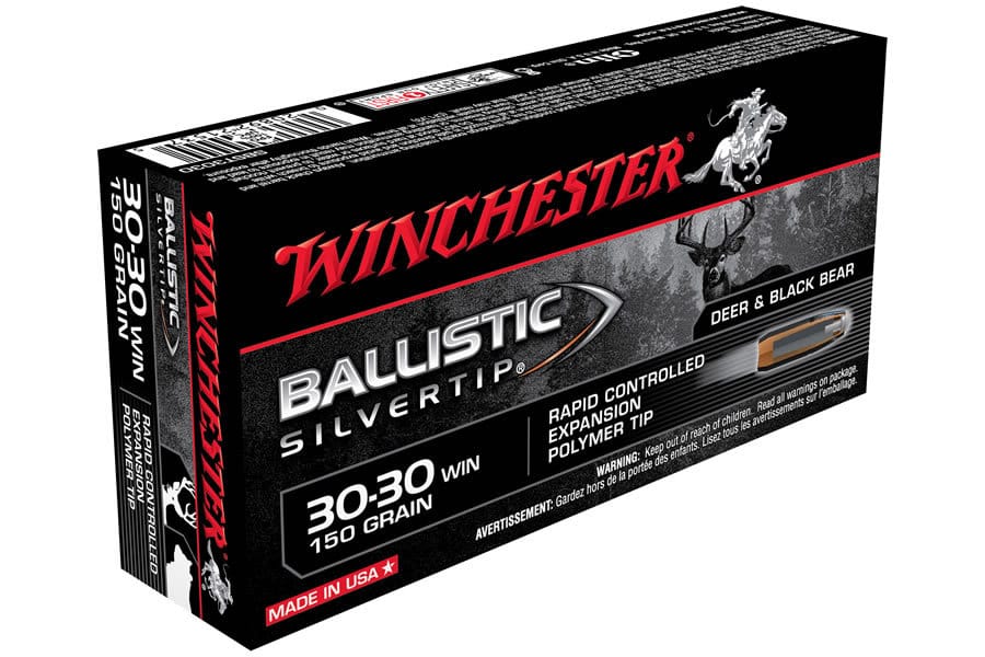 Rapid controlled expansion, Massive knockdown, and moderate penetration make Winchester 30-30 Win Ballistic Silvertip ammunition the premiere bug game thin skin hunting ammunition.